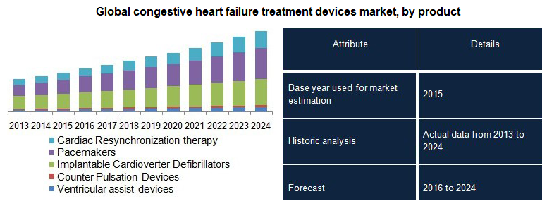 The CONGESTIVE HEART FAILURE (CHF) TREATMENT DEVICES MARKET is expected to reach USD 32.0 billion by 2024, according to a new report by Grand View Research, Inc. The rising burden of CVDs is one of the prime factors responsible for lucrative growth of this vertical. Sedentary lifestyles, mental stress, and junk food consumption tendencies are the key factors responsible for development of CVDs.