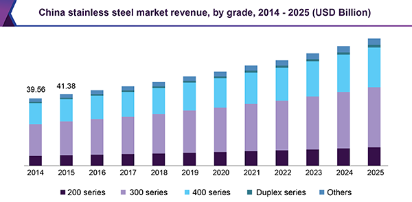 A report by Grand View Reserarch, Inc. indicates that the global STAINLESS STEEL MARKET is poised to rise to a valuation of USD 127.19 billion by 2024. Stainless steel is extensively used in various end-use industries such as electronics, transportation, building and construction, and industrial machinery owing to its inherent characteristics such as high tensile strength, resistance, and durability. High recycling rates in comparison to other alloys are likely to positively impact the growth of the market.